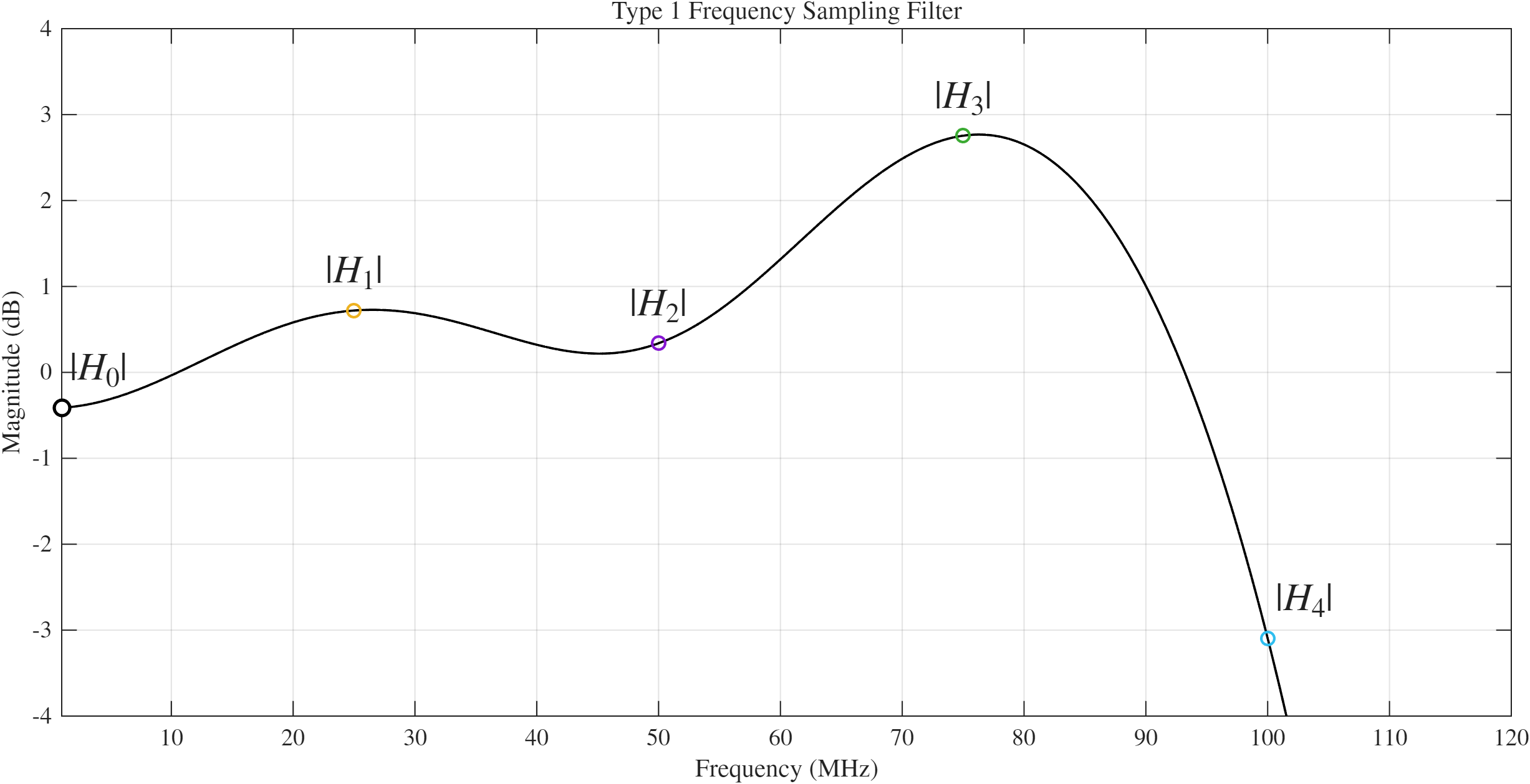 Although a FSF interpolates a frequency response through the filter's frequency samples, the filter's frequency response may be undesirable between samples. In this thesis, an optimization method is developed that minimizes interpolation errors between frequency samples while generating a near-linear phase frequency sampling filter (NL-FSF). The method describes the filter's frequency response as a function of the filter's frequency samples. A weighted cost function uses this description to minimize the energy between the desired and actual frequency responses. The cost function incorporates weighting parameters that allow weighting between passband errors, stopband errors, and minimizing linear phase deviations. The cost function is minimized using a Hybrid Trust--Region Levenberg--Marquardt (TR--LM) Algorithm, with fully derived gradients and Hessians.
